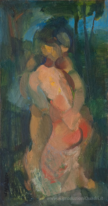 Ti offriamo una riproduzione artigianale su tela dell'opera famosa 'L'abbraccio' di Stanley Pinker, dal Museo delle Riproduzioni.