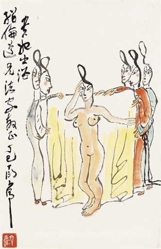 Ti offriamo una riproduzione artigianale su tela dell'opera famosa 'Lady a Bath' di Ding Yanyong, dal Museo delle Riproduzioni.