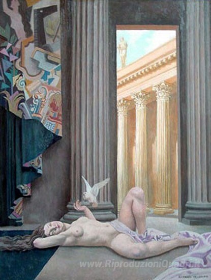 Ti offriamo una riproduzione artigianale su tela dell'opera famosa 'Le temple d'or' di Raphael Delorme, dal Museo delle Riproduzioni.