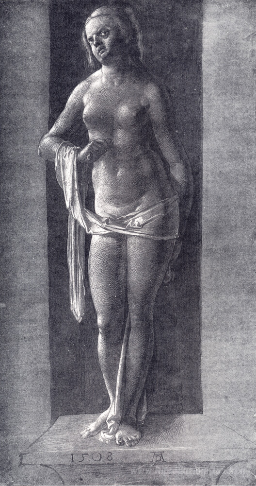 Ti offriamo una riproduzione artigianale su tela dell'opera famosa 'Lucrezia' di Albrecht Durer, dal Museo delle Riproduzioni.