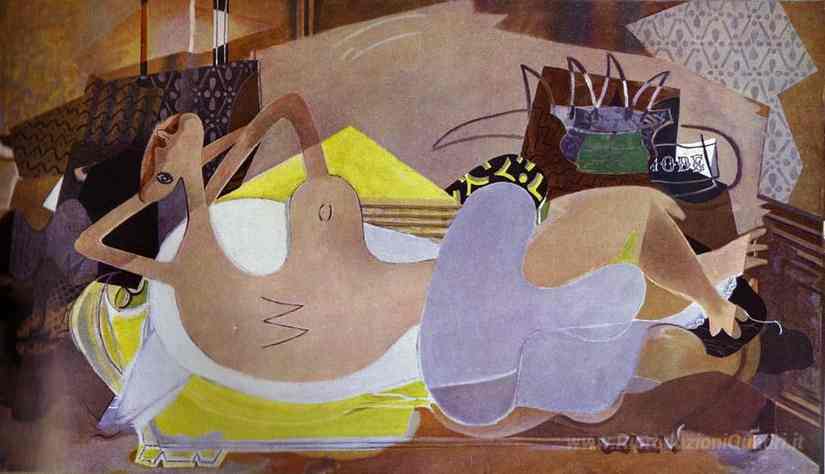 Ti offriamo una riproduzione artigianale su tela dell'opera famosa 'Lying Nude (La Bagnante IX)' di Georges Braque, dal Museo delle Riproduzioni.