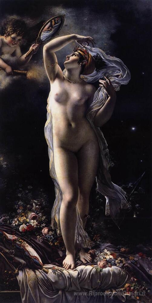 Ti offriamo una riproduzione artigianale su tela dell'opera famosa 'Mademoiselle Lange come Venere' di Anne-Louis Girodet, dal Museo delle Riproduzioni.