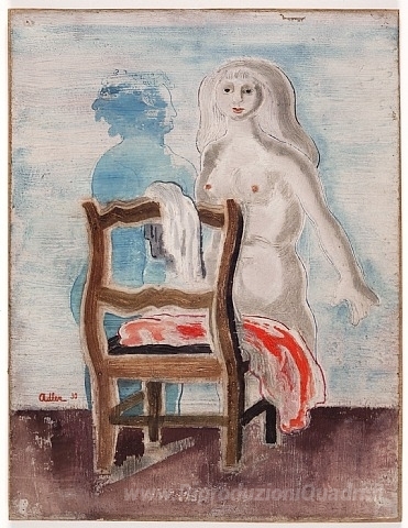 Ti offriamo una riproduzione artigianale su tela dell'opera famosa 'Mit Akt Stuhl und rotem Tuch' di Jankel Adler, dal Museo delle Riproduzioni.