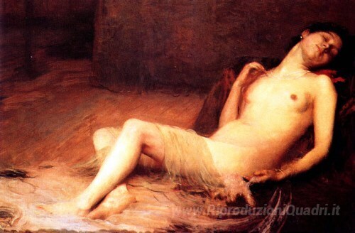 Ti offriamo una riproduzione artigianale su tela dell'opera famosa 'Nu Deitado' di Eliseu Visconti, dal Museo delle Riproduzioni.