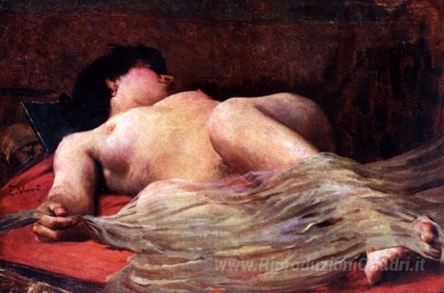Ti offriamo una riproduzione artigianale su tela dell'opera famosa 'Nu Feminino' di Eliseu Visconti, dal Museo delle Riproduzioni.