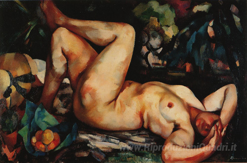 Ti offriamo una riproduzione artigianale su tela dell'opera famosa 'Nu' di Eduardo Viana, dal Museo delle Riproduzioni.