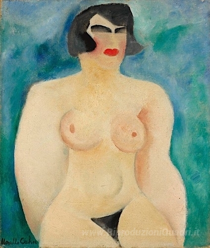 Ti offriamo una riproduzione artigianale su tela dell'opera famosa 'Nu sur fond bleu' di Marcelle Cahn, dal Museo delle Riproduzioni.