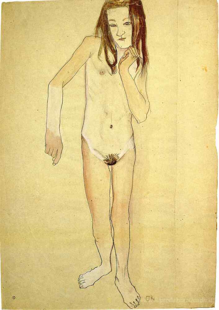 Ti offriamo una riproduzione artigianale su tela dell'opera famosa 'Nude Girl Standing' di Oskar Kokoschka, dal Museo delle Riproduzioni.