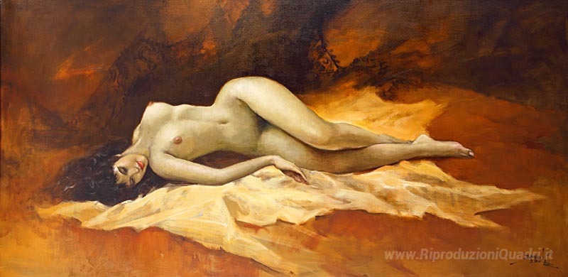 Ti offriamo una riproduzione artigianale su tela dell'opera famosa 'Nudità' di Basuki Abdullah, dal Museo delle Riproduzioni.