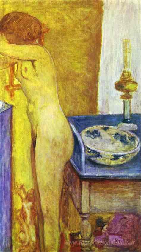 Ti offriamo una riproduzione artigianale su tela dell'opera famosa 'Nudo al Tavolo Toilet' di Pierre Bonnard, dal Museo delle Riproduzioni.