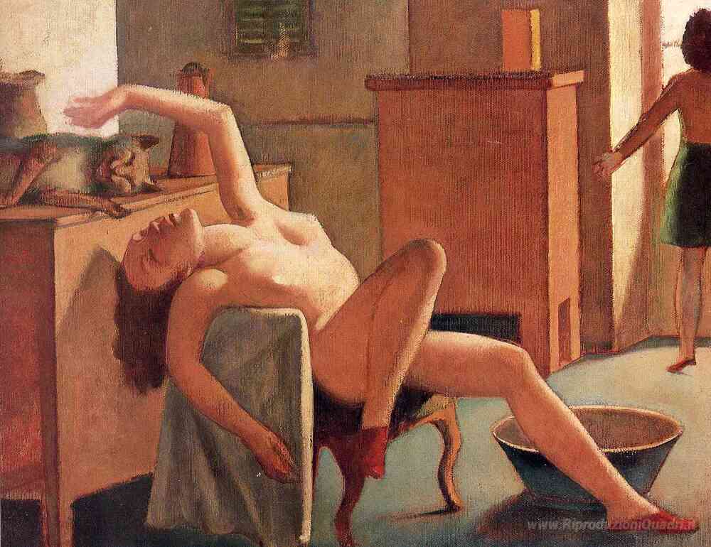 Ti offriamo una riproduzione artigianale su tela dell'opera famosa 'Nudo con gatto' di Balthus, dal Museo delle Riproduzioni.