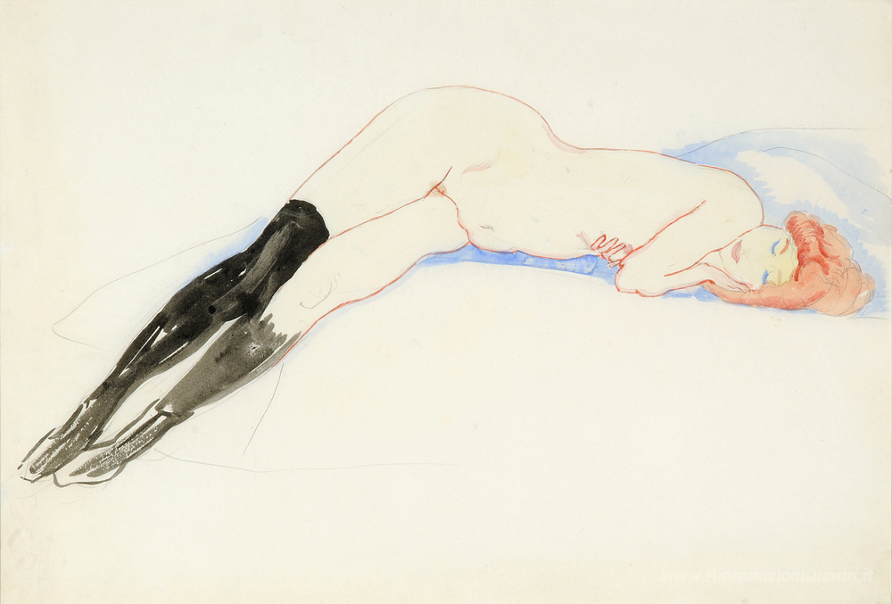 Ti offriamo una riproduzione artigianale su tela dell'opera famosa 'Nudo disteso con calze nere (Greet)' di Jan Sluyters, dal Museo delle Riproduzioni.