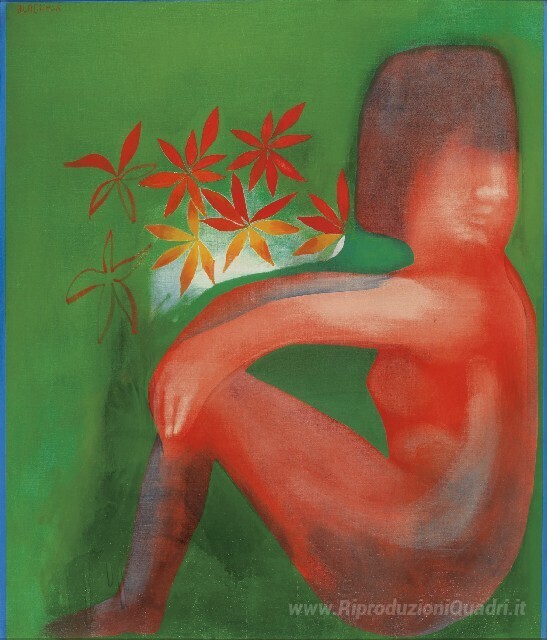 Ti offriamo una riproduzione artigianale su tela dell'opera famosa 'Nudo e Fiori' di Charles Blackman, dal Museo delle Riproduzioni.