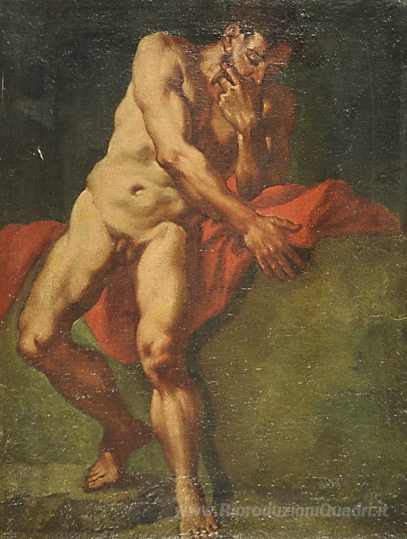 Ti offriamo una riproduzione artigianale su tela dell'opera famosa 'Nudo maschile' di Giulia Lama, dal Museo delle Riproduzioni.