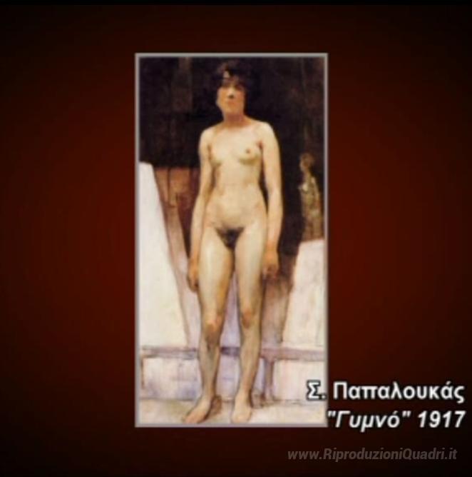 Ti offriamo una riproduzione artigianale su tela dell'opera famosa 'Nudo' di Spyros Papaloukas, dal Museo delle Riproduzioni.