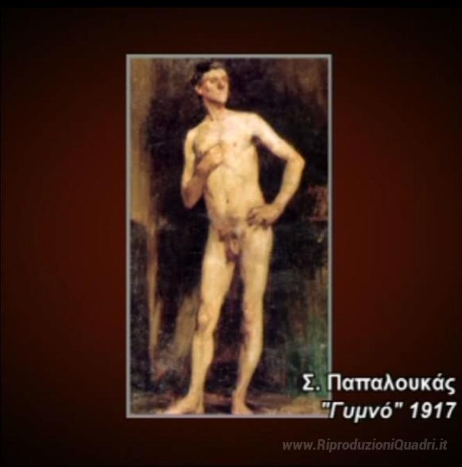 Ti offriamo una riproduzione artigianale su tela dell'opera famosa 'Nudo' di Spyros Papaloukas, dal Museo delle Riproduzioni.