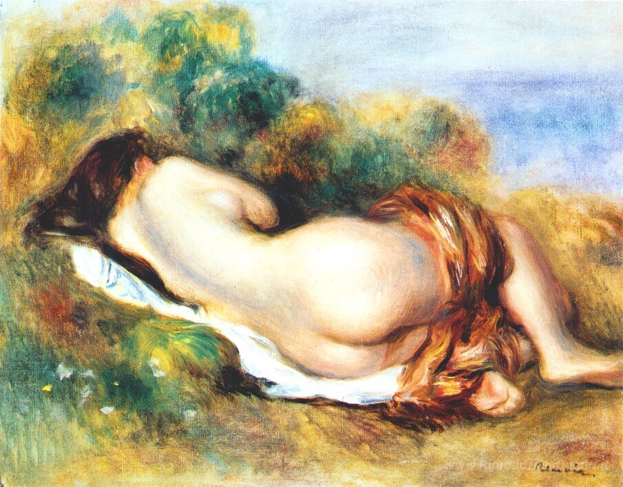 Ti offriamo una riproduzione artigianale su tela dell'opera famosa 'Nudo sdraiato' di Pierre-Auguste Renoir, dal Museo delle Riproduzioni.