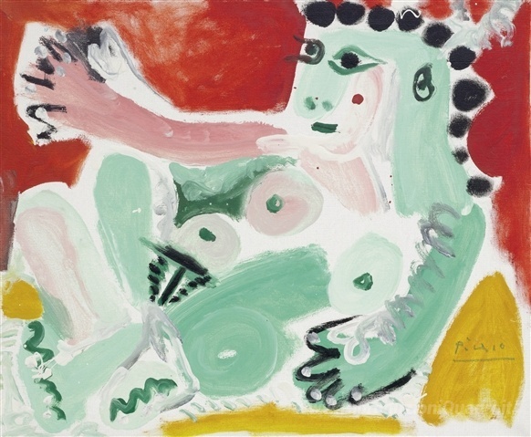 Ti offriamo una riproduzione artigianale su tela dell'opera famosa 'Nudo seduto sostenuto da cuscini (Jacqueline)' di Pablo Picasso, dal Museo delle Riproduzioni.