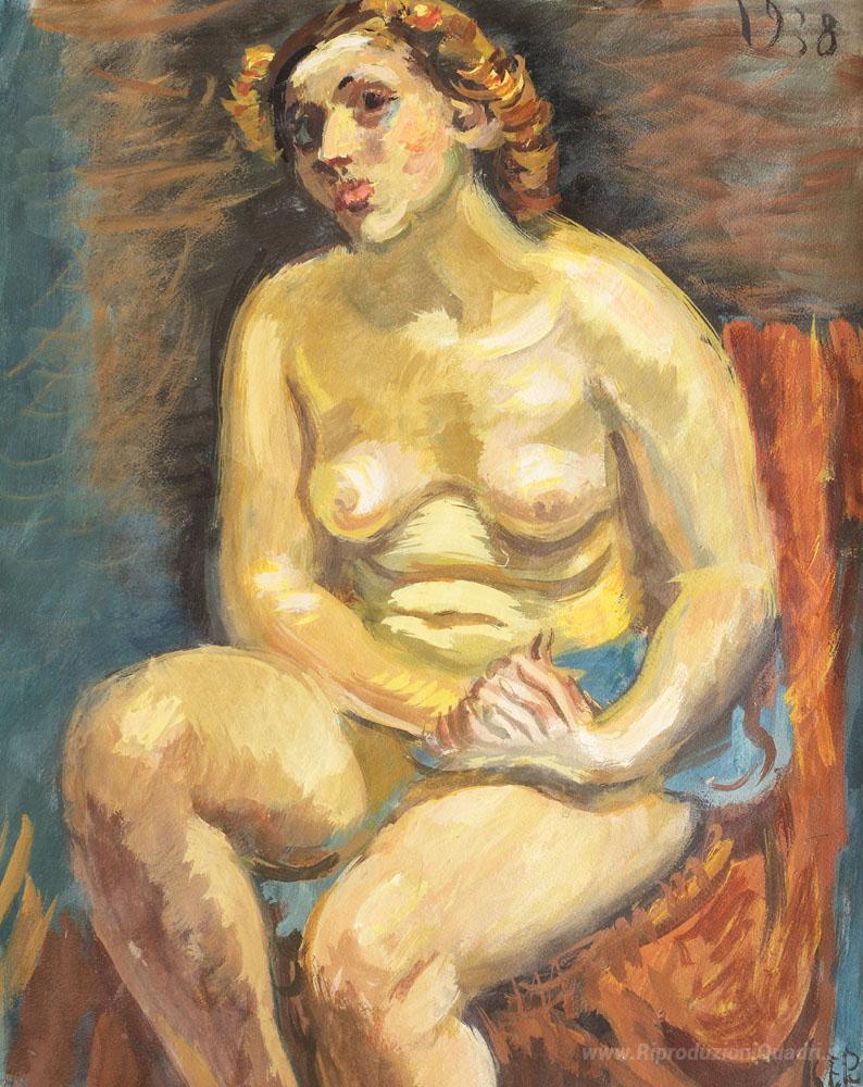 Ti offriamo una riproduzione artigianale su tela dell'opera famosa 'Nudo sulla sedia' di Iosif Iser, dal Museo delle Riproduzioni.