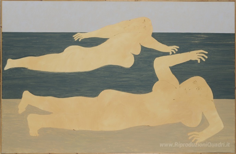 Ti offriamo una riproduzione artigianale su tela dell'opera famosa 'Nudo sulla spiaggia' di Nikos Nikolaou, dal Museo delle Riproduzioni.