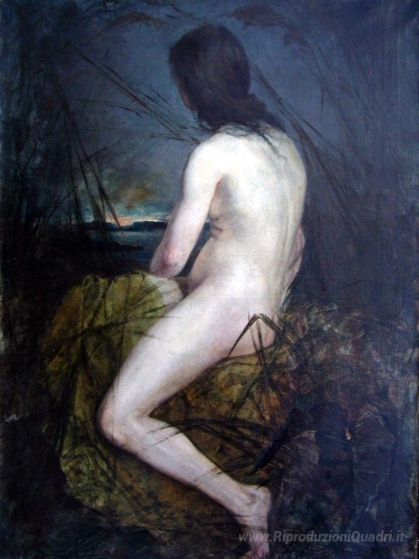 Ti offriamo una riproduzione artigianale su tela dell'opera famosa 'Nudo tra le canne' di Wilhelm Kotarbinski, dal Museo delle Riproduzioni.