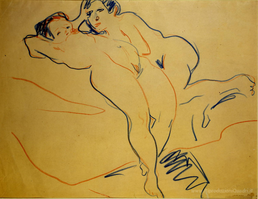 Ti offriamo una riproduzione artigianale su tela dell'opera famosa 'Paio' di Ernst Ludwig Kirchner, dal Museo delle Riproduzioni.