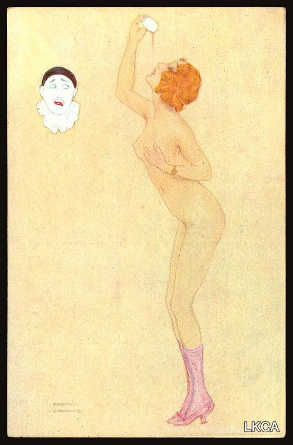 Ti offriamo una riproduzione artigianale su tela dell'opera famosa 'Peccati mortali' di Raphael Kirchner, dal Museo delle Riproduzioni.