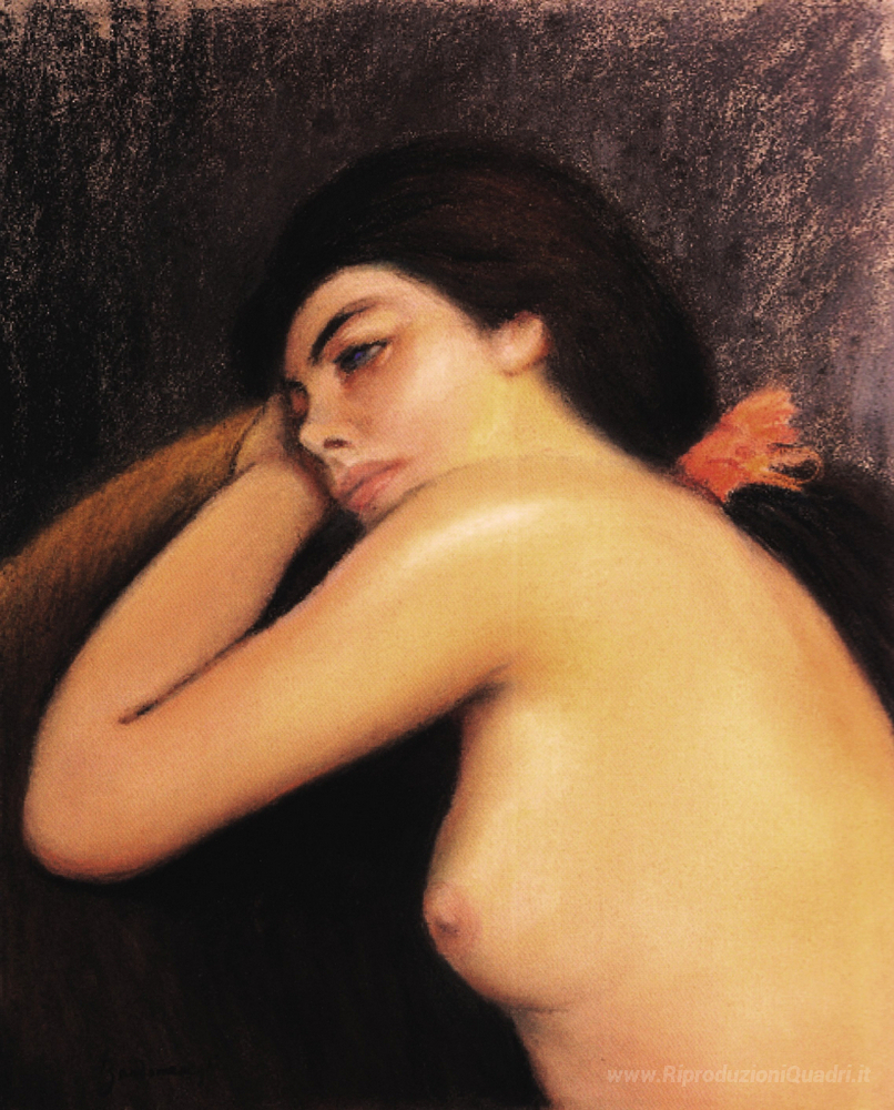 Ti offriamo una riproduzione artigianale su tela dell'opera famosa 'Petto di una giovane ragazza' di Federico Zandomeneghi, dal Museo delle Riproduzioni.