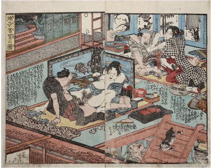 Ti offriamo una riproduzione artigianale su tela dell'opera famosa 'Questa attività su più piani contemporaneamente' di Utagawa Kuniyoshi, dal Museo delle Riproduzioni.