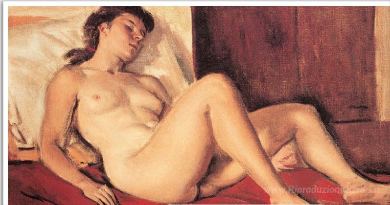 Ti offriamo una riproduzione artigianale su tela dell'opera famosa 'Ragazza addormentata' di Yiannis Moralis, dal Museo delle Riproduzioni.
