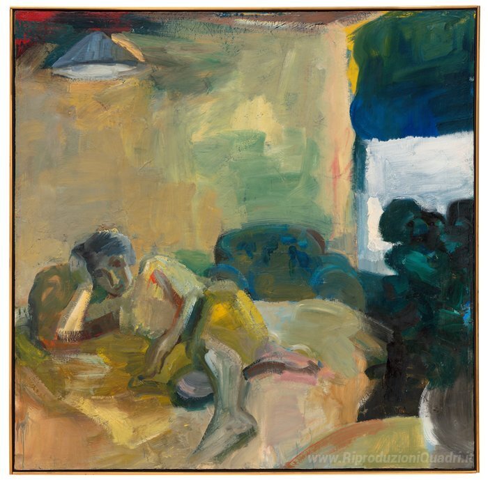 Ti offriamo una riproduzione artigianale su tela dell'opera famosa 'Ragazza che si adagia' di Elmer Bischoff, dal Museo delle Riproduzioni.