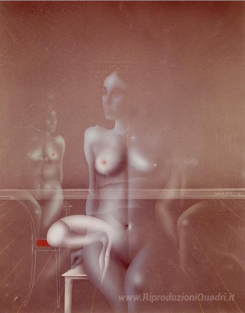 Ti offriamo una riproduzione artigianale su tela dell'opera famosa 'Ragazza con la croce gialla' di Paul Wunderlich, dal Museo delle Riproduzioni.