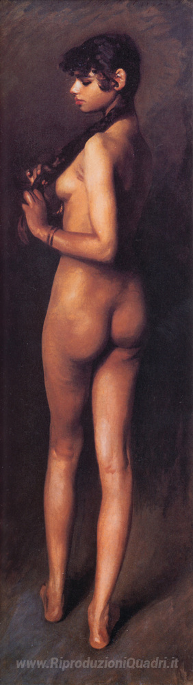 Ti offriamo una riproduzione artigianale su tela dell'opera famosa 'Ragazza nuda egiziano' di John Singer Sargent, dal Museo delle Riproduzioni.