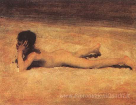 Ti offriamo una riproduzione artigianale su tela dell'opera famosa 'Ragazzo nudo sulla spiaggia' di John Singer Sargent, dal Museo delle Riproduzioni.