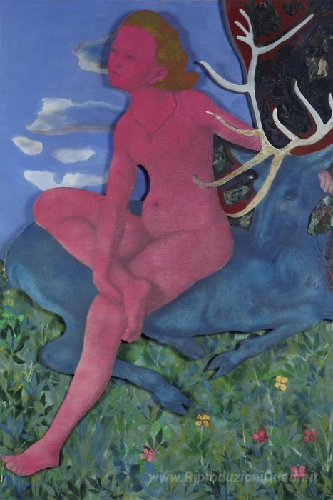Ti offriamo una riproduzione artigianale su tela dell'opera famosa 'Raysseland' di Martial Raysse, dal Museo delle Riproduzioni.
