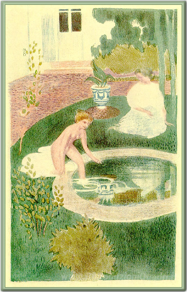 Ti offriamo una riproduzione artigianale su tela dell'opera famosa 'Riflessione in una fontana' di Maurice Denis, dal Museo delle Riproduzioni.