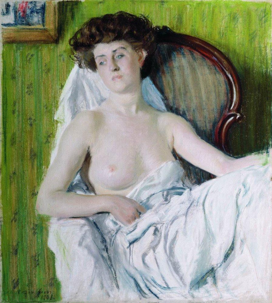Ti offriamo una riproduzione artigianale su tela dell'opera famosa 'Ritratto di signora. Modello' di Boris Kustodiev, dal Museo delle Riproduzioni.