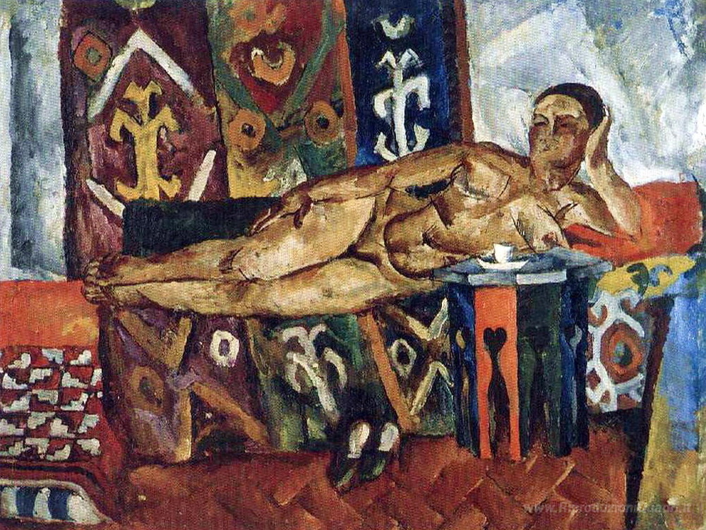 Ti offriamo una riproduzione artigianale su tela dell'opera famosa 'Scheherazade' di Pyotr Konchalovsky, dal Museo delle Riproduzioni.