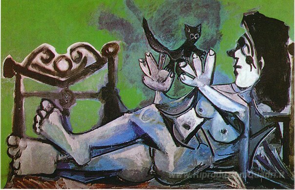 Ti offriamo una riproduzione artigianale su tela dell'opera famosa 'Sdraiato nudo femminile con il gatto' di Pablo Picasso, dal Museo delle Riproduzioni.
