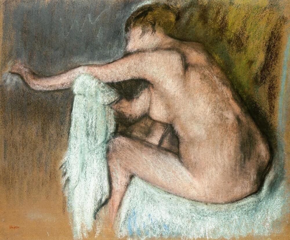 Ti offriamo una riproduzione artigianale su tela dell'opera famosa 'Secchezza la sua donna del braccio' di Edgar Degas, dal Museo delle Riproduzioni.