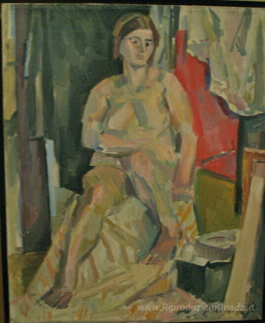 Ti offriamo una riproduzione artigianale su tela dell'opera famosa 'Seduto nudo' di George Mavroides, dal Museo delle Riproduzioni.
