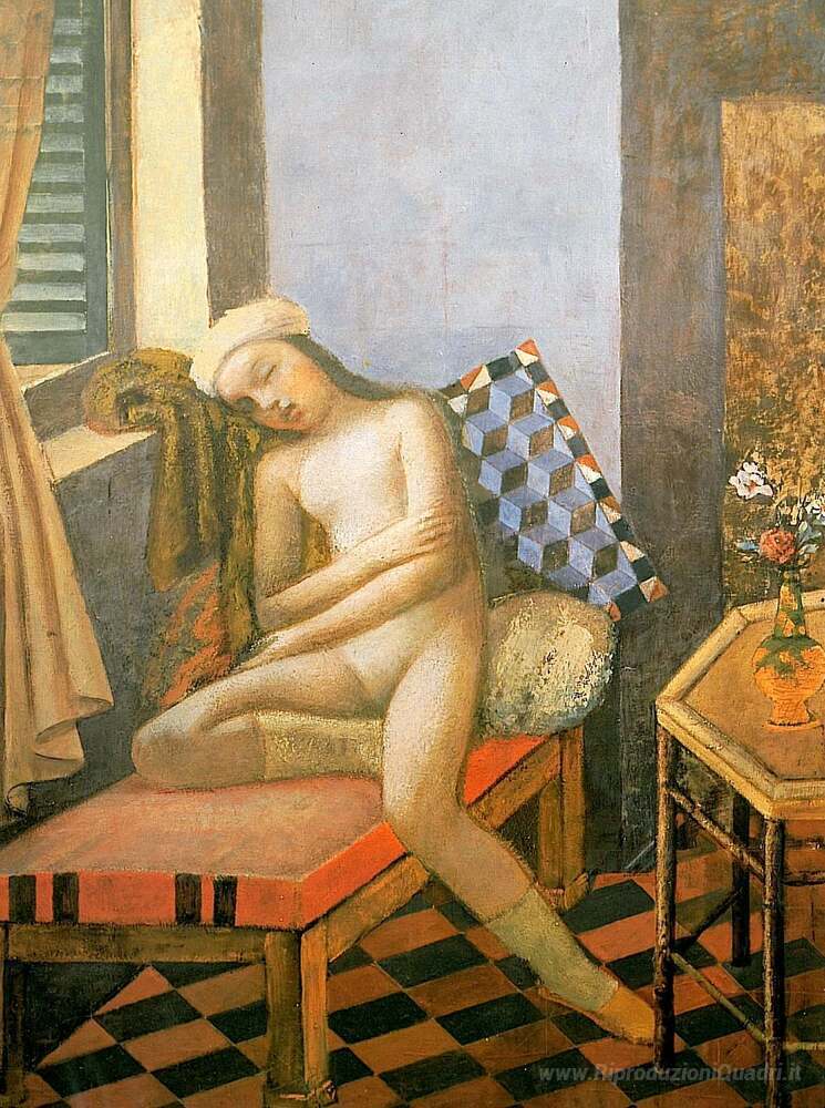 Ti offriamo una riproduzione artigianale su tela dell'opera famosa 'Sleeping Nude' di Balthus, dal Museo delle Riproduzioni.