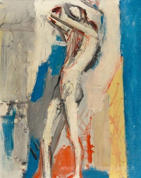 Ti offriamo una riproduzione artigianale su tela dell'opera famosa 'Stehender M?nnerakt, Unterengstringen' di Max Gubler, dal Museo delle Riproduzioni.