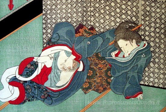 Ti offriamo una riproduzione artigianale su tela dell'opera famosa 'Surimono' di Utagawa Kunisada, dal Museo delle Riproduzioni.
