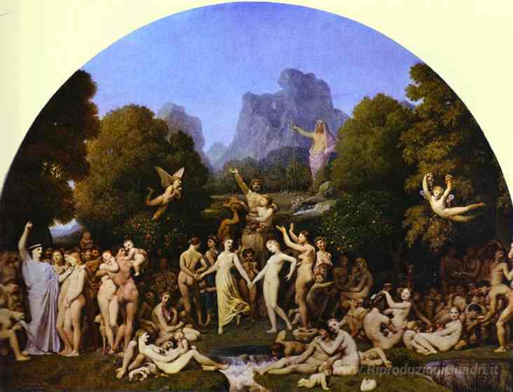 Ti offriamo una riproduzione artigianale su tela dell'opera famosa 'The Golden Age' di Jean Auguste Dominique Ingres, dal Museo delle Riproduzioni.