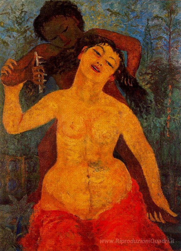 Ti offriamo una riproduzione artigianale su tela dell'opera famosa 'Titolo sconosciuto' di Antonietta Raphael, dal Museo delle Riproduzioni.