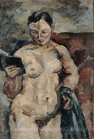 Ti offriamo una riproduzione artigianale su tela dell'opera famosa 'Una ragazza con un libro' di Pyotr Konchalovsky, dal Museo delle Riproduzioni.