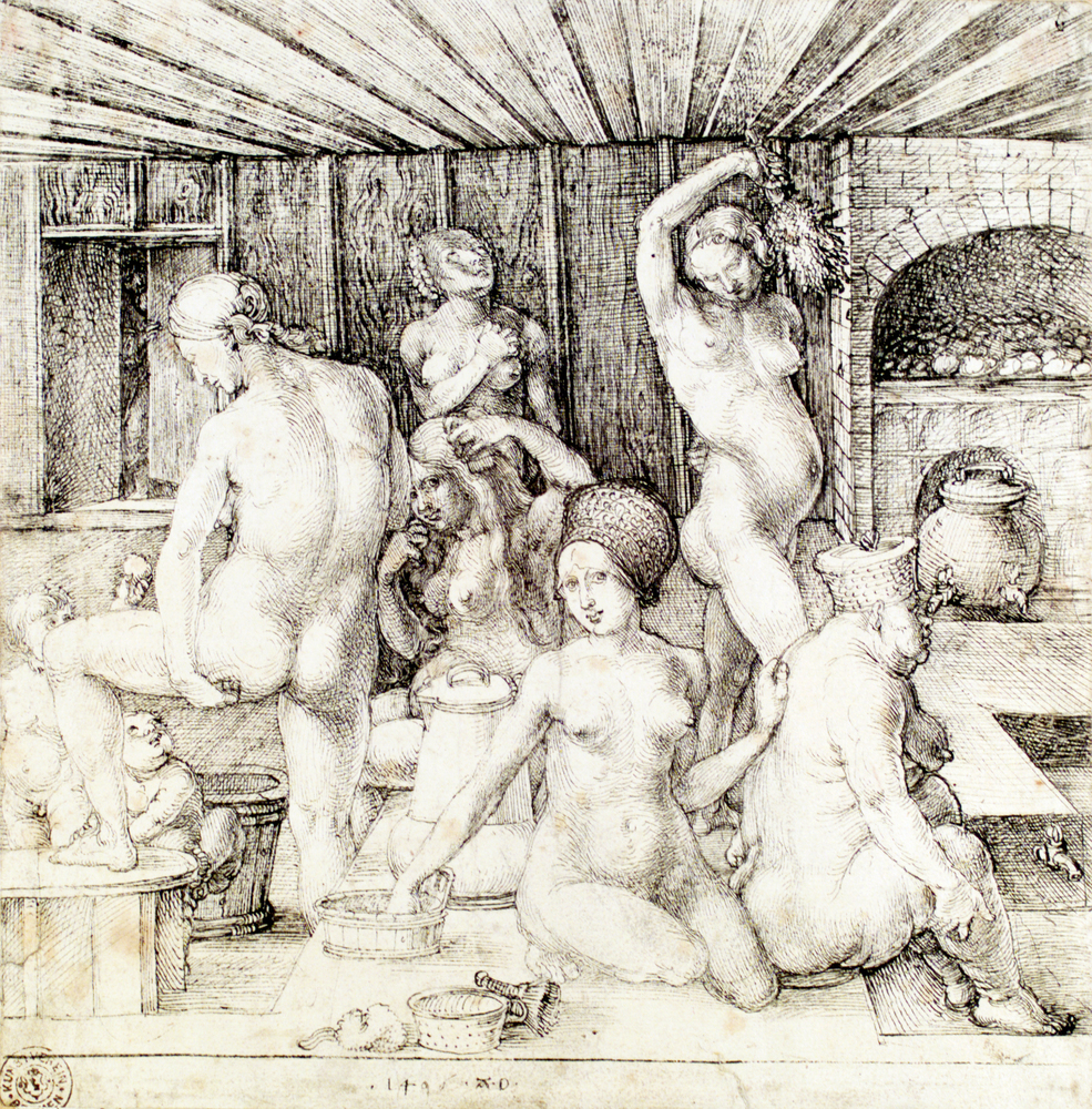 Ti offriamo una riproduzione artigianale su tela dell'opera famosa 'Woman`s Bath' di Albrecht Durer, dal Museo delle Riproduzioni.