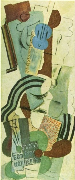 Partizione, una bottiglia di porto, chitarra, carte da gioco