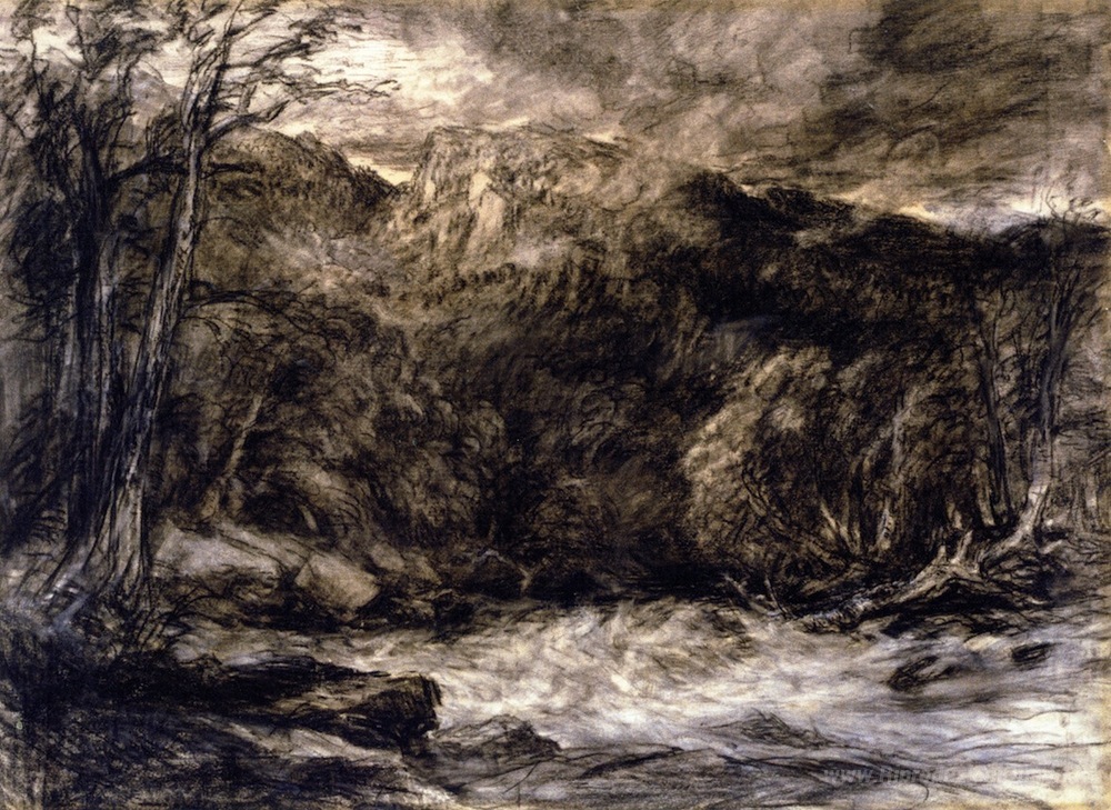 Ti offriamo una riproduzione artigianale su tela dell'opera famosa 'A Mountain Torrent' di David Cox, dal Museo delle Riproduzioni.